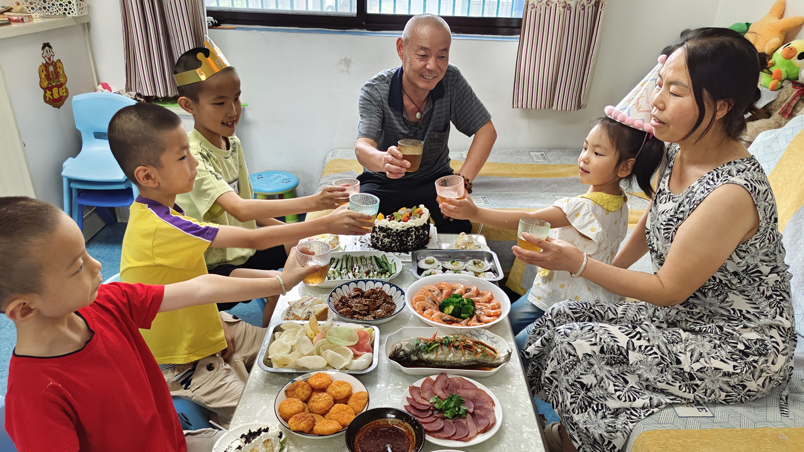 That day was filled with celebration. Not only had she returned home, but they also had a cake for her oldest brother’s birthday. With all the songs and cheering and the warm circle of family, Xiang Xiang exclaimed to all of them, “I will remember this day forever.” And then, she started getting very sleepy. Finally, Mama took her to bed for her nighttime cuddles with her favorite blanket, and Xiang Xiang fell asleep in her arms. Juqin thought to herself, “There is no better feeling than this.”