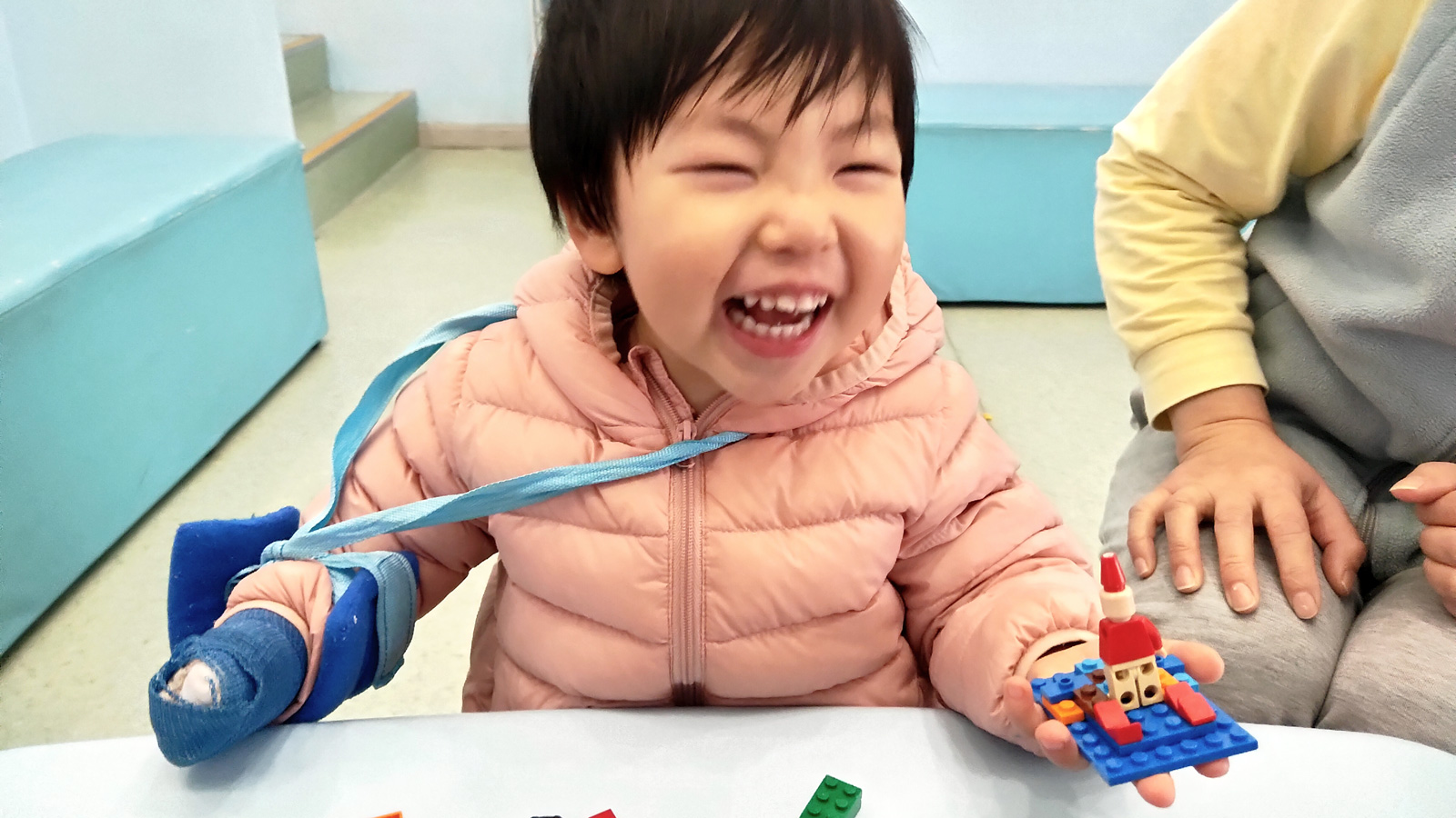 Day in and day out as Xiang Xiang’s right hand began to heal, Lujie worked with her at the China Care Home to practice ways to use her hand to support, hold and move objects. With the surgeon separating her thumb from the rest of her small hand, Xiang Xiang became more dexterous. At the same time, she began writing and painting with her left hand.